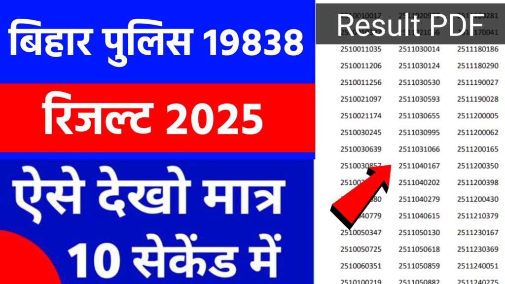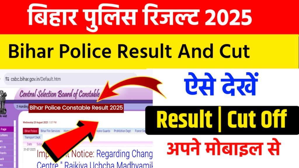 Bihar Police Constable Result 2025 बिहार पुलिस कांस्टेबल के लिए 19838 पदों के लिए केंद्रीय चयन परिषद (CSBC) के द्वारा
